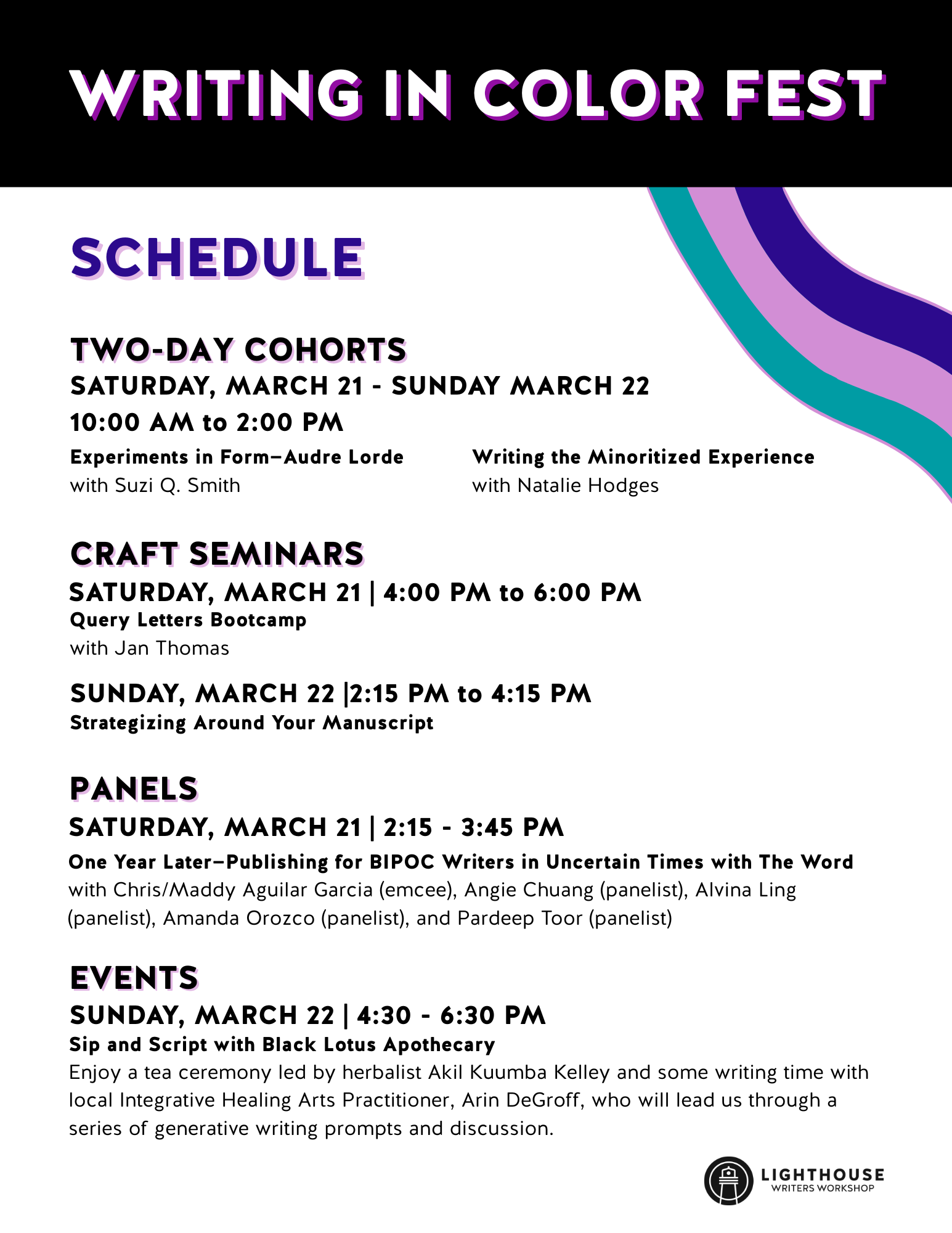 Writing in Color Fest : 2:15-3:45 p.m. on Sat., March 21, 2026